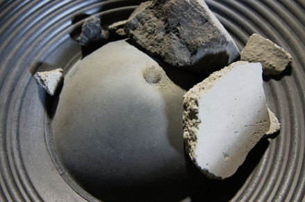 Beton, der dem Wasserturm die nötige Stabilität liefert, wurde in dieser Installation zum Gießen filigraner Skulpturen genutzt. Ihre Formen verweisen dabei auf den vulkanischen Ursprung des Basaltgesteins, der im Turm lediglich als Verkleidung, im Kunstwerk jedoch als Stütze für einen Lautsprecher dient. Die Materialien werden so ihrer architektonischen Funktionalität entzogen und es entstehen neue Perspektiven auf ihre menschliche Nutzung.